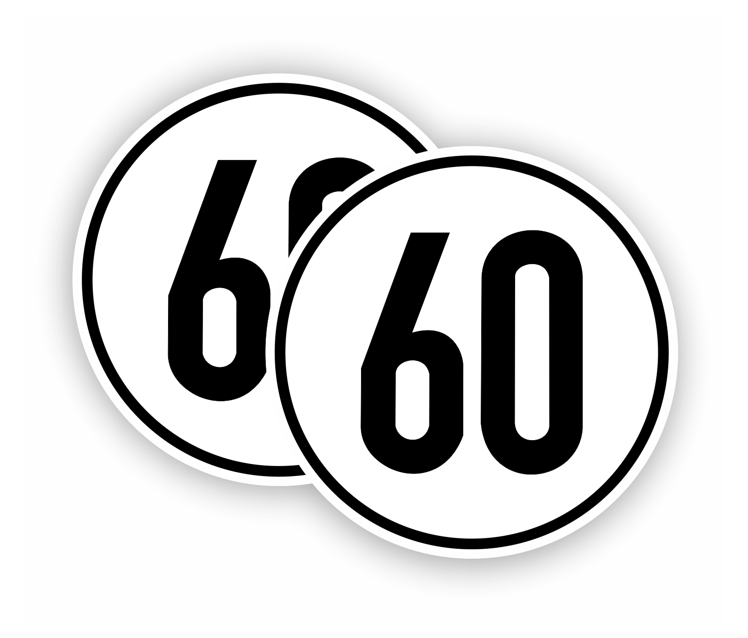 Hochwertiger Aufkleber/Sticker SET - 60 kmH Höchstgeschwindigkeit- schwarz weiß